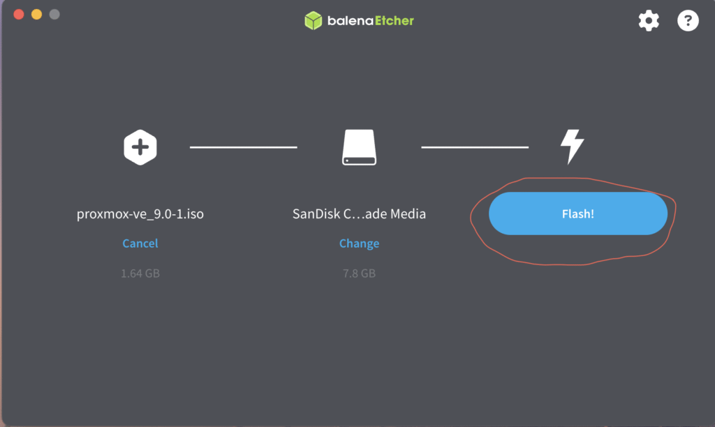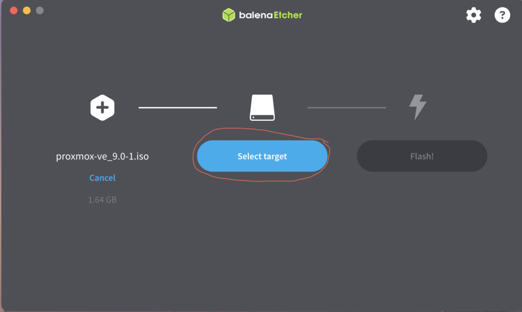 Open up Balena Etcher and click the FLASH FROM FILE button to select the Proxmox .ISO file you downloaded,