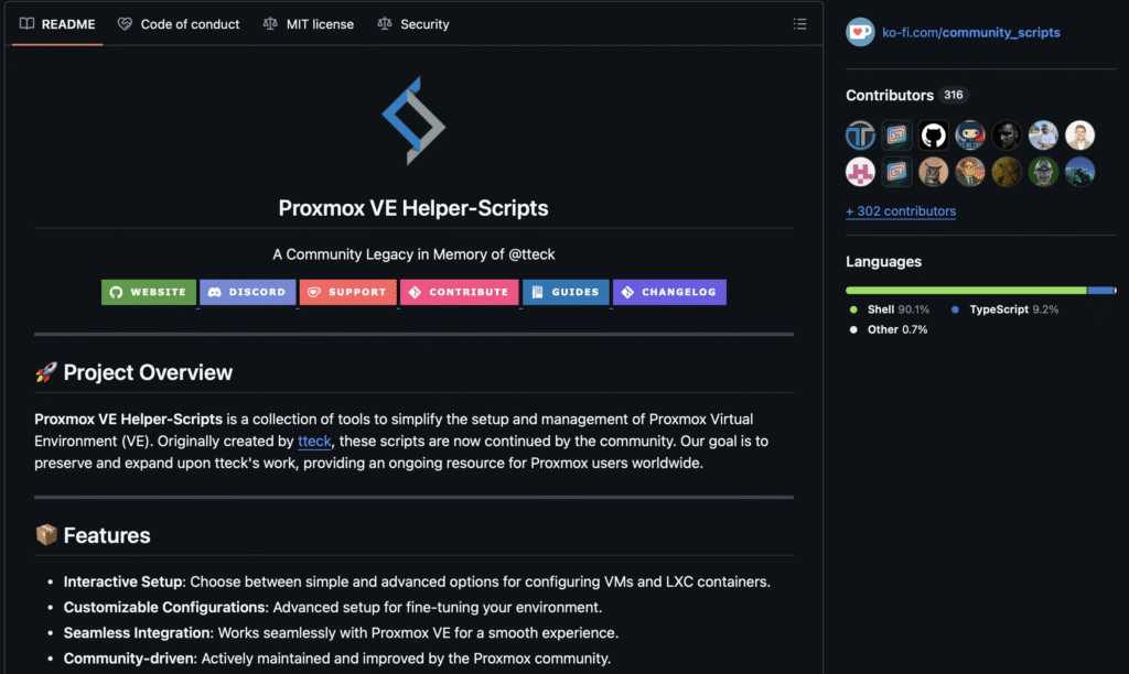 After installing the Proxmox VM and launching it, we will need to run some post installation setup to make sure that the virtual machine operates at its optimal performance for your computer system. Big thanks to tteck for taking out time to create various very useful installation scripts for your Proxmox virtual machine or system. A whole bunch of such scripts can be found on his github page HERE.