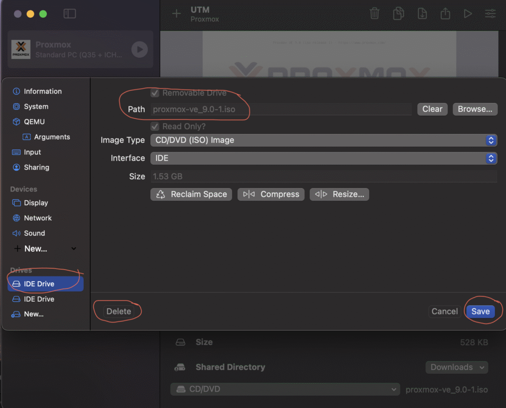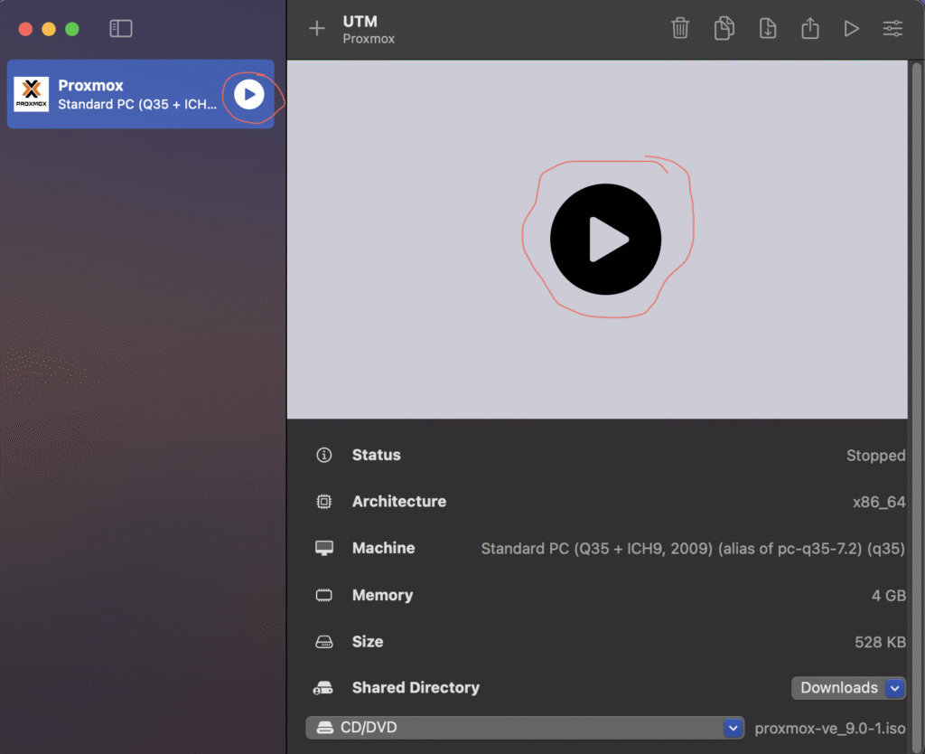 Once the installation is complete. UTM will automatically restart the Proxmox VM and it will attempt to be reinstalled again, we will need to stop this behavior from the VM startup options.
