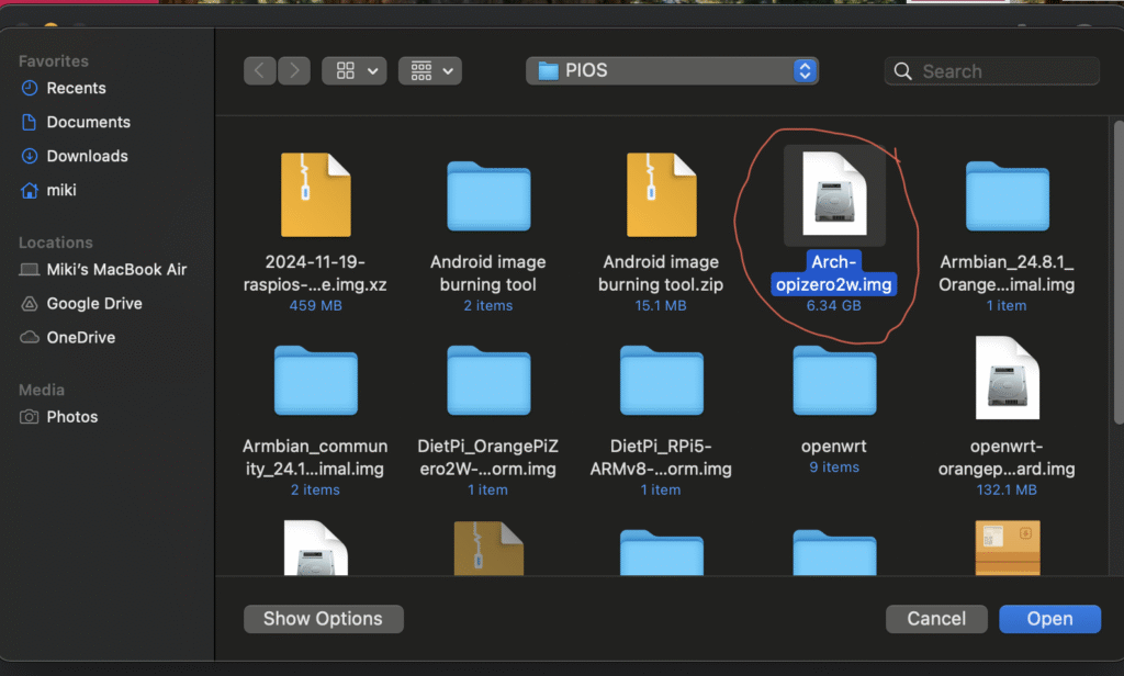 I selected the stock Sunxi ArchLinux Image for Orange Pi Zero 2W in the example below,