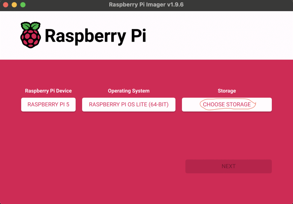 Next we select the boot-able disk where we will be flashing the OS installer into, this could be an SD card, a USB flash drive, a HDD or SSD drive. In the example below, I am installing mine on two on SD card. Go ahead to click on CHOOSE STORAGE and select the external media where you will be flashing the installer into,